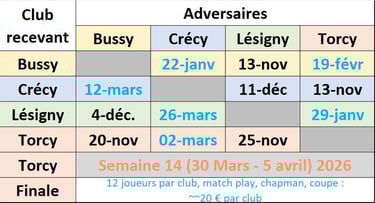 · Les rencontres se joueront par équipes de 2 joueurs en Chapman et en match-play.